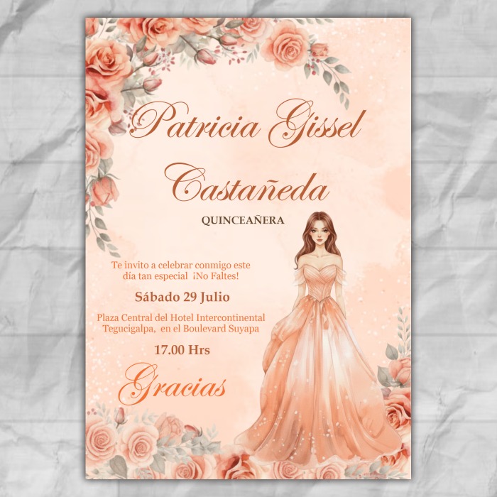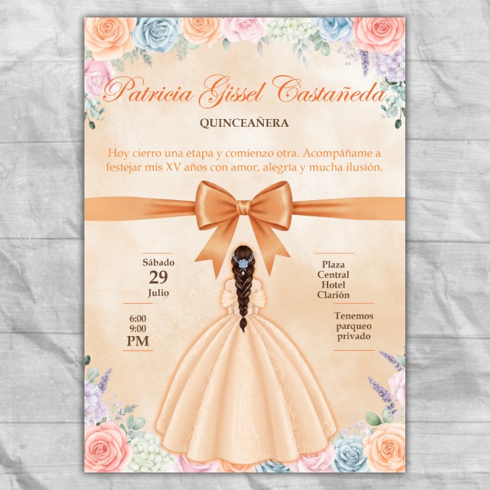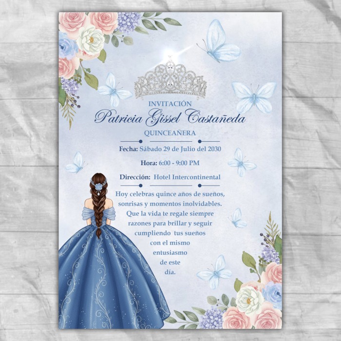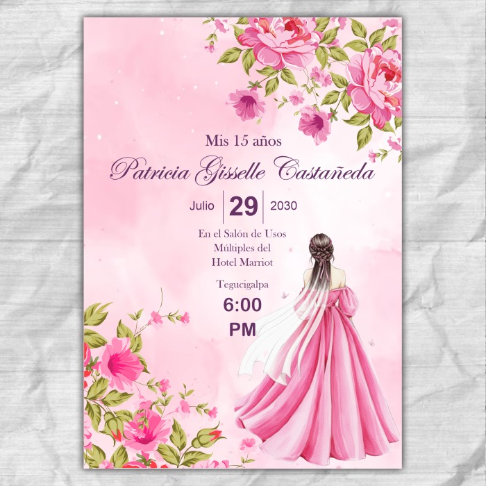 Diseño gratis tarjeta de invitación 15 años en tonos rosas y con mariposas